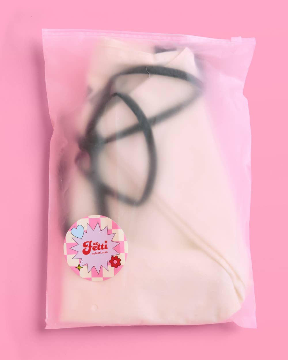 - Color: Cream with Black Straps and Bow Detail