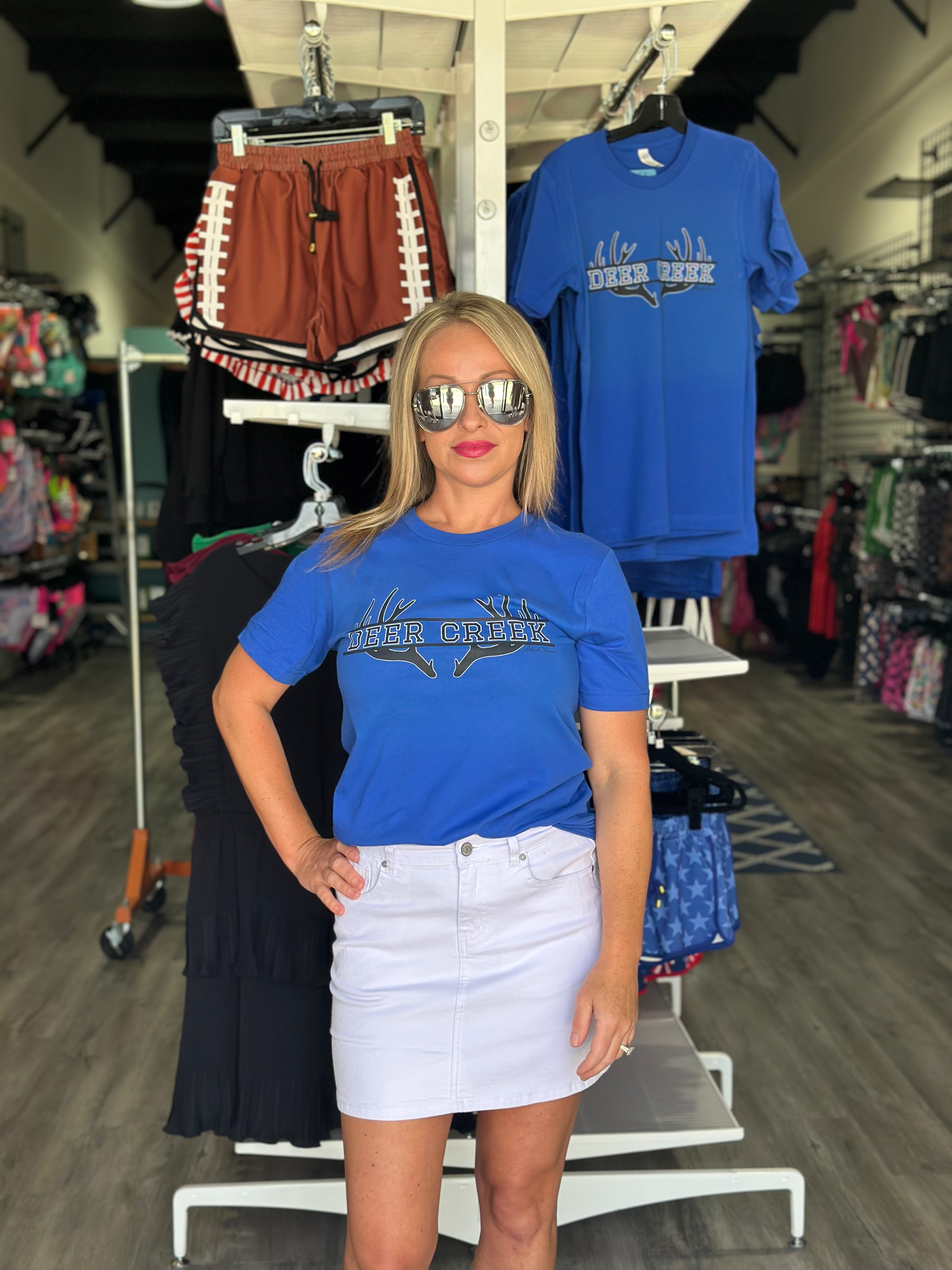 Whether you're cheering in the bleachers or celebrating the big win, this tee keeps your school spirit shining bright, game after game! Join the heard, raise your antlers, and let's show 'em what Deer Creek pride is all about!